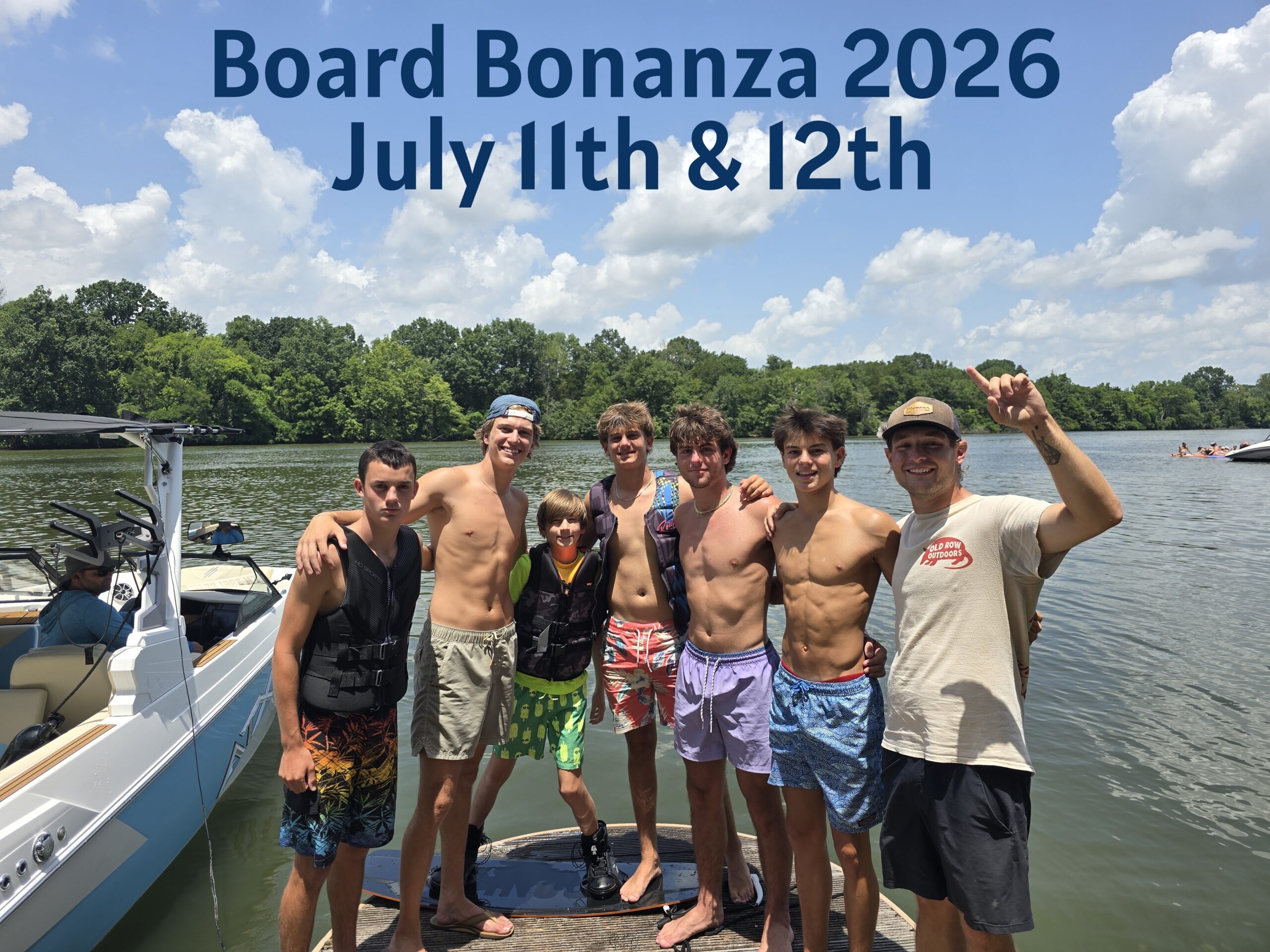 Board Bonanza is back again for 2026 as the original grassroots event to promote wakeboarding within the Middle Tennessee boating community. Lone Branch Rec area on Old Hickory Lake will once again be the location for this family friendly event held July 11-12 2026.